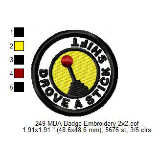 Drove A Stick Shift Merit Adulting Badge Machine Embroidery Digitized Design Files