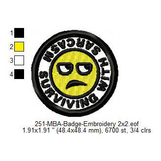 Surviving With Sarcasm Merit Adulting Badge Machine Embroidery Digitized Design Files
