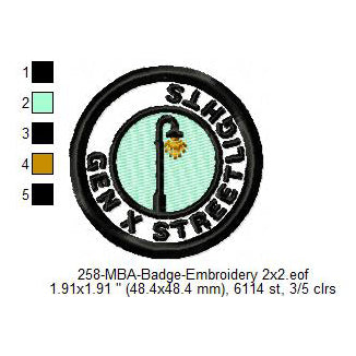 Gen X Streetlight Merit Adulting Badge Machine Embroidery Digitized Design Files