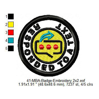 Responded to a Text Merit Adulting Badge Machine Embroidery Digitized Design Files