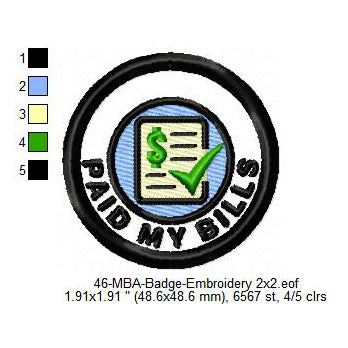 Paid My Bills Merit Adulting Badge Machine Embroidery Digitized Design Files