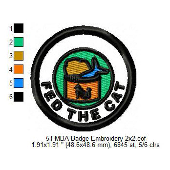Fed The Cat Merit Adulting Badge Machine Embroidery Digitized Design Files