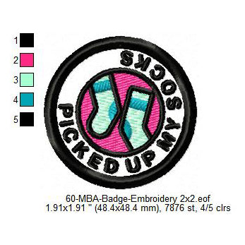 Picked Up My Socks Lifestyle Merit Adulting Badge Machine Embroidery Digitized Design Files