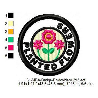 Planted Flowers Daily Life Merit Adulting Badge Machine Embroidery Digitized Design Files