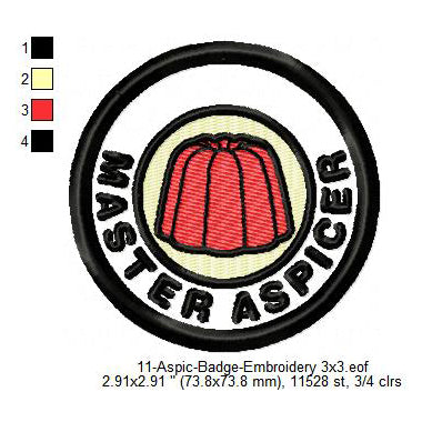 Master Aspicer Aspic Merit Adulting Badge Machine Embroidery Digitized Design Files