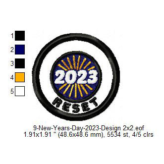Reset 2023 New Year Wishing Merit Badge Machine Embroidery Digitized Design Files