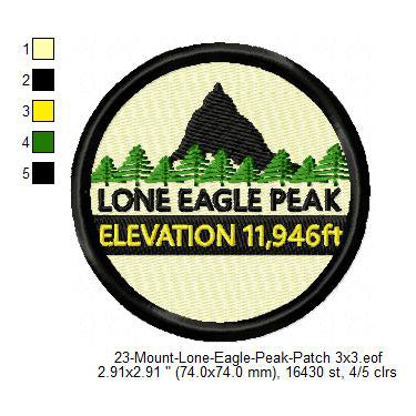 Mount Lone Eagle Peak Mountains Merit Badge Machine Embroidery Digitized Design Files