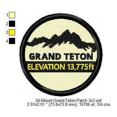 Mount Grand Teton Mountains Merit Badge Machine Embroidery Digitized Design Files