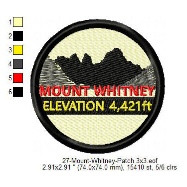 Mount Whitney Mountains Merit Badge Machine Embroidery Digitized Design Files