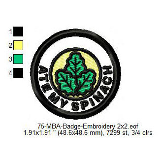 Ate My Spinach Daily Life Merit Adulting Badge Machine Embroidery Digitized Design Files