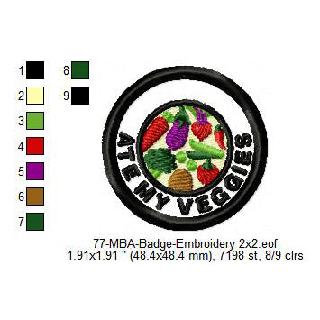 Ate My Veggies Daily Life Merit Adulting Badge Machine Embroidery Digitized Design Files