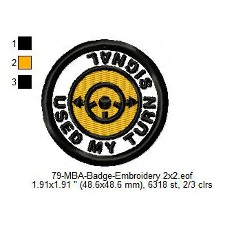 Used My Turn Signal Daily Life Merit Adulting Badge Machine Embroidery Digitized Design Files