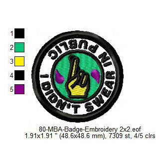 I Did Not Swear In Public Daily Life Merit Adulting Badge Machine Embroidery Digitized Design Files