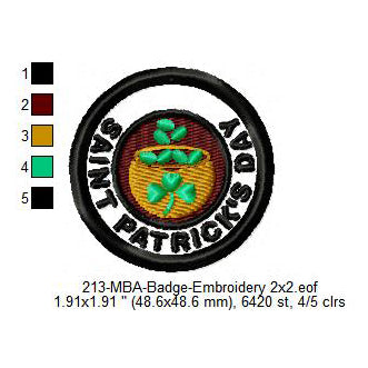Saint Patrick's Day Irish Leprechaun Pot Merit Adulting Badge Machine Embroidery Digitized Design Files