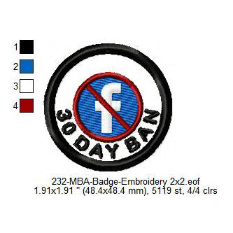 30 Day Facebook Ban Merit Adulting Badge Machine Embroidery Digitized Design Files