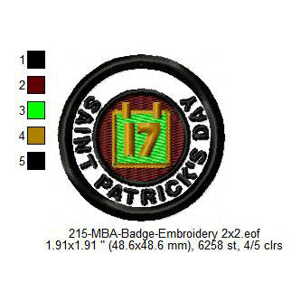Saint Patrick's Day Date March 17 Merit Adulting Badge Machine Embroidery Digitized Design Files