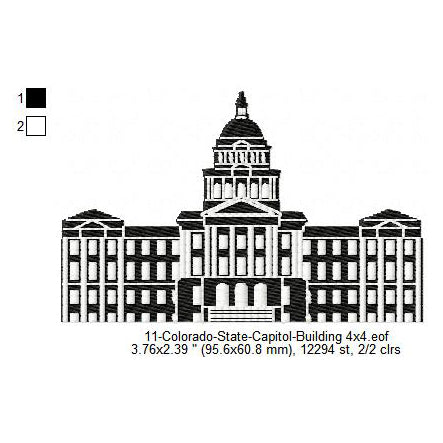 Colorado State Capitol Building Silhouette Machine Embroidery Digitized Design Files