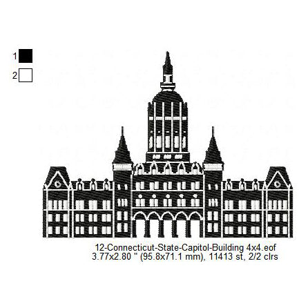 Connecticut State Capitol Building Silhouette Machine Embroidery Digitized Design Files