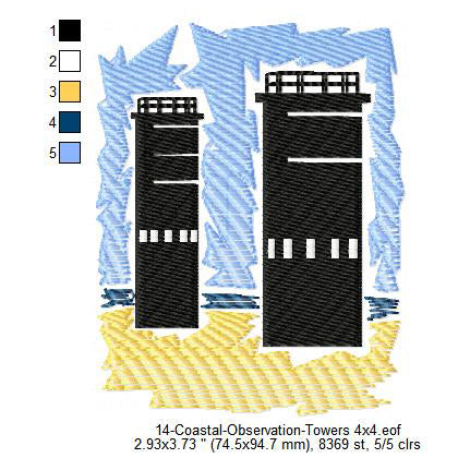 Coastal Observation Towers Silhouette Machine Embroidery Digitized Design Files