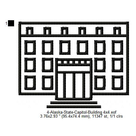 Alaska State Capitol Building Silhouette Machine Embroidery Digitized Design Files