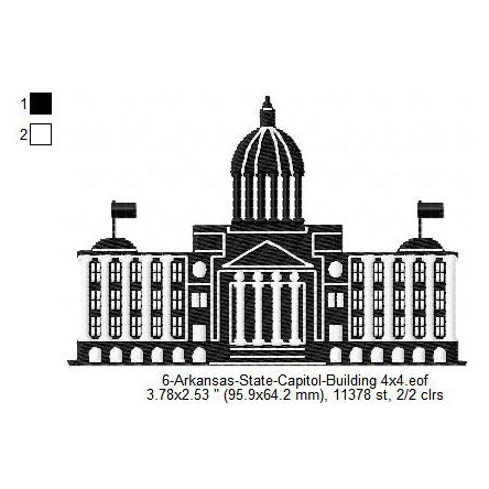 Arkansas State Capitol Building Silhouette Machine Embroidery Digitized Design Files