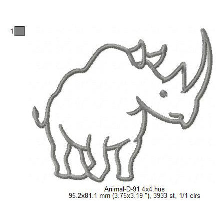 Rhino Outline Wild Animal Line Art Machine Embroidery Digitized Design Files