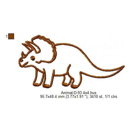 Triceratops Dinosaur Outline Animal Line Art Machine Embroidery Digitized Design Files