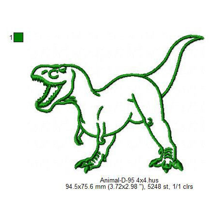 Tyrannosaurus Dinosaur Outline Animal Line Art Machine Embroidery Digitized Design Files