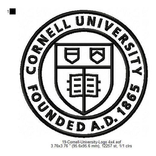 Cornell University Logo Machine Embroidery Digitized Design Files