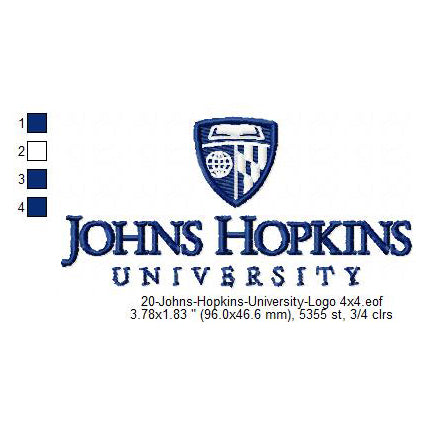 Johns Hopkins University Logo Machine Embroidery Digitized Design Files