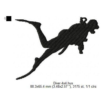 Diver Swimming Silhouette Machine Embroidery Digitized Design Files