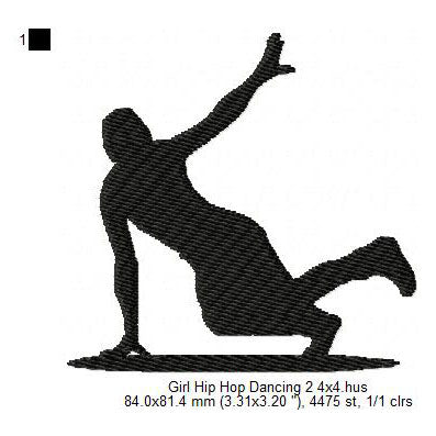 Young Girl Hip-Hop Dancing Silhouette Machine Embroidery Digitized Design Files