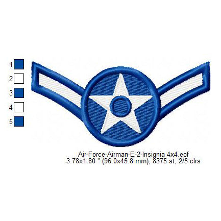 Air Force Airman E-2 Insignia Machine Embroidery Digitized Design Files