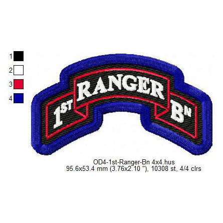 US Army 1st Ranger Battalion Insignia Machine Embroidery Digitized Design Files