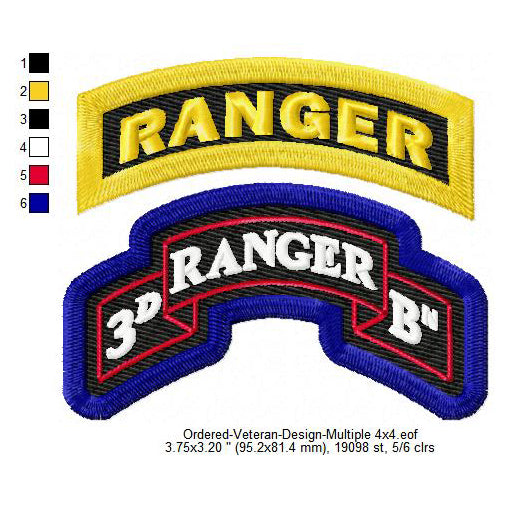 US Army Third Ranger Battalion Arm Insignia Machine Embroidery Digitized Design Files