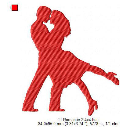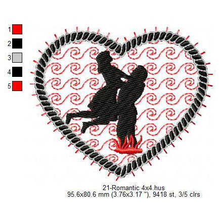 Romantic Silhouette Valentines Day Machine Embroidery Digitized Design Files