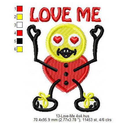 Love Me Cartoon Emoji Valentines Day Machine Embroidery Digitized Design Files