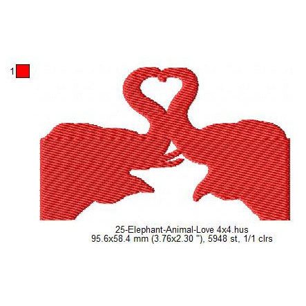 Elephant Animal Love Valentines Day Machine Embroidery Digitized Design Files