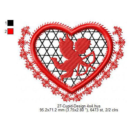 Cupid Love Swirl Symbol Valentines Day Machine Embroidery Digitized Design Files