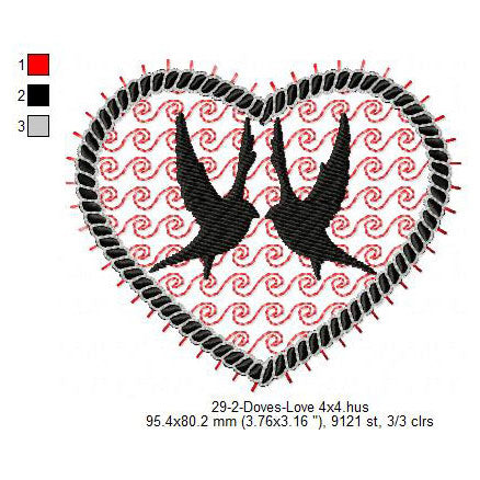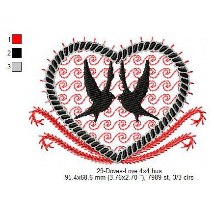 Couple Dove Making Love Valentines Day Machine Embroidery Digitized Design Files