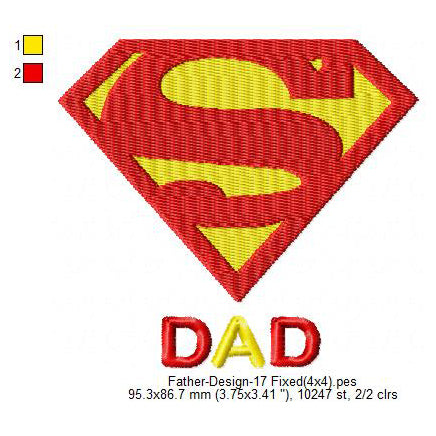 Super Dad Father's Day Machine Embroidery Digitized Design Files