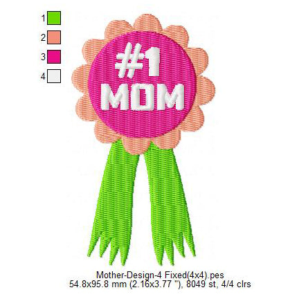#1 Mom Mother's Day Machine Embroidery Digitized Design Files