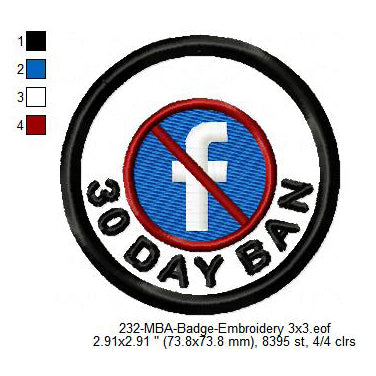 30 Day Facebook Ban Merit Adulting Badge Machine Embroidery Digitized Design Files