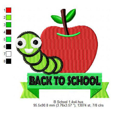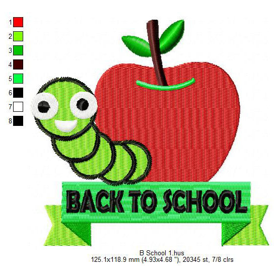 Apple Worm Back To School Symbol Machine Embroidery Digitized Design Files