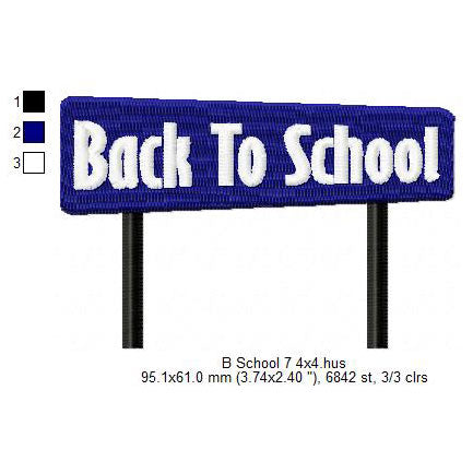 Back To School Sign Board Machine Embroidery Digitized Design Files