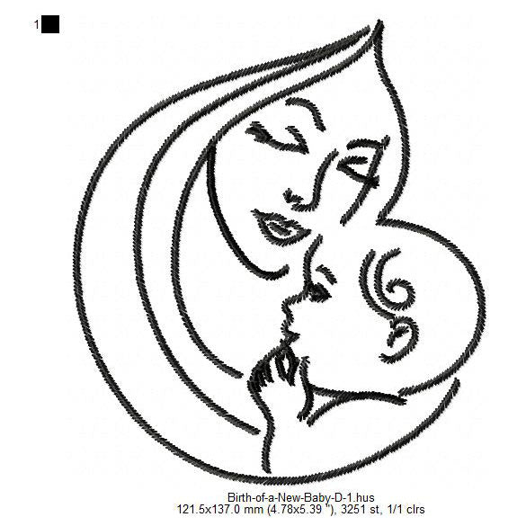 Mother Care For New Born Baby Toddler Line Art Machine Embroidery Digitized Design Files