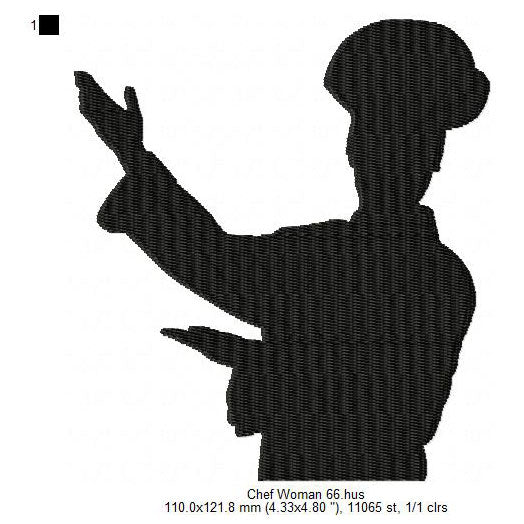 Chef Women Silhouette Machine Embroidery Digitized Design Files