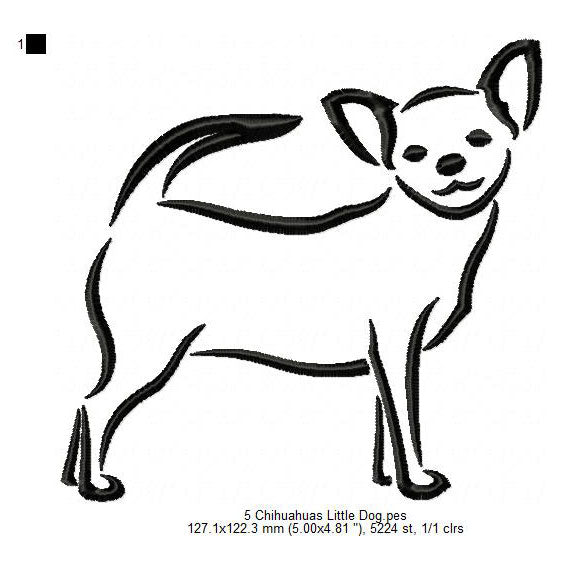 Chihuahua Cute Little Dog Line Art Silhouette Machine Embroidery Digitized Design Files