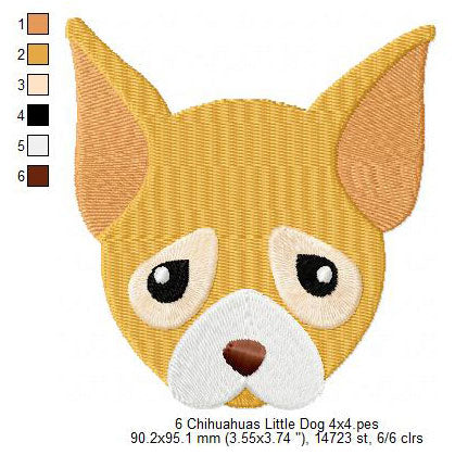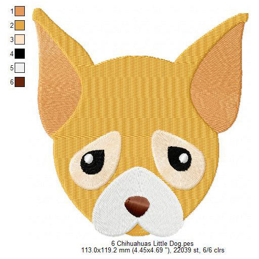 Chihuahua Cute Little Dog Cartoon Face Machine Embroidery Digitized Design Files