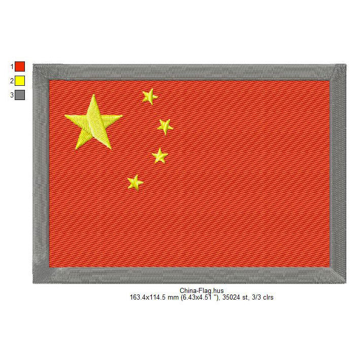 China Flag Chinese Machine Embroidery Digitized Design Files | Dst | Pes | Hus | VP3